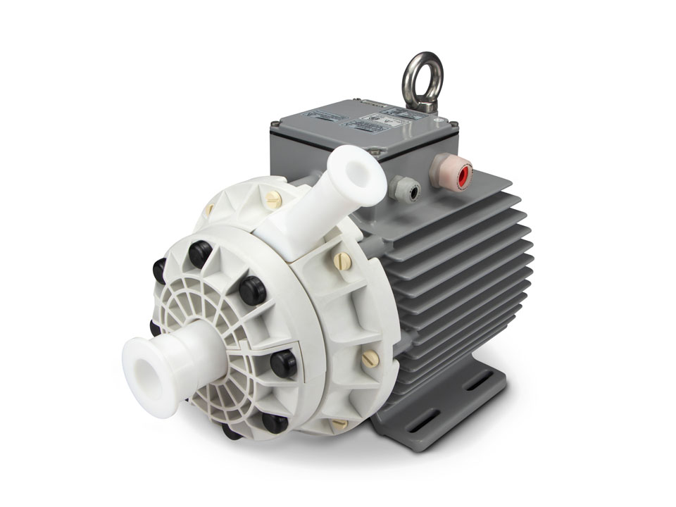 The impeller and casing are both fabricated from chemical-resistant high purity fluorocarbon resins. Together with the rotor magnet they make up the pump head.