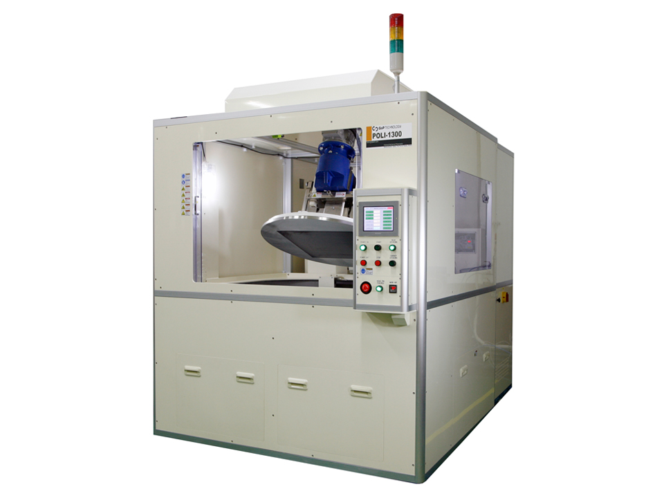 The G & P Technology POLI-1300PCB planarization tool is specifically designed for use in processing large-format multilayer panels. The G&P POLI-1300PCB uses a large format carrier designed for use with rectangular substrates up to 530 mm on a side. The rigid design of both the direct drive carrier and tool, coupled with efficient through-the-table slurry delivery, provides for efficient planarization with exceptional process uniformity and substrate-to-substrate repeatability. Using process hardware similar to that used in semiconductor CMP processing, the carrier assembly with the substrate backing film is easy to load and securely holds the substrate in place for polishing.